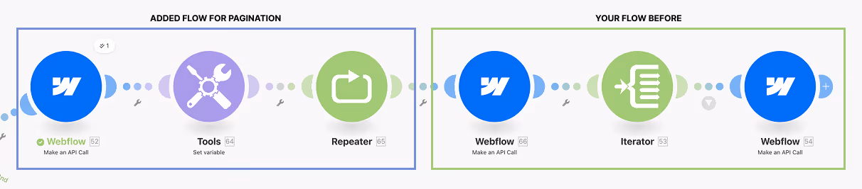 De grootste fout die mensen maken bij Webflow API pagination in Make.com is denken dat ze een nieuwe flow moeten bouwen.